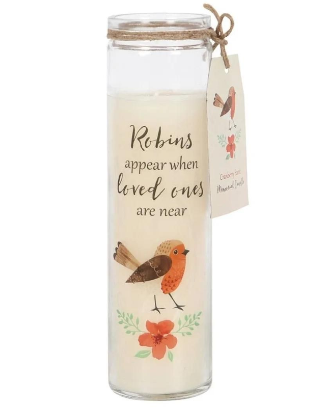Trouvez du réconfort et de l'espoir avec la Bougie Rouge-Gorge, un hommage touchant aux êtres chers disparus.