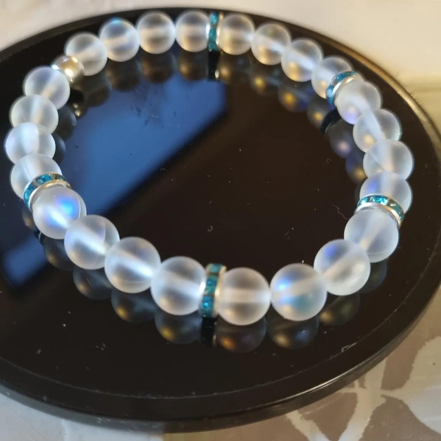 Ce bracelet en perles de lune givrées capture la beauté subtile et envoûtante de la lune. Parfait pour les femmes et les hommes qui recherchent un bijou à la fois spirituel et élégant.