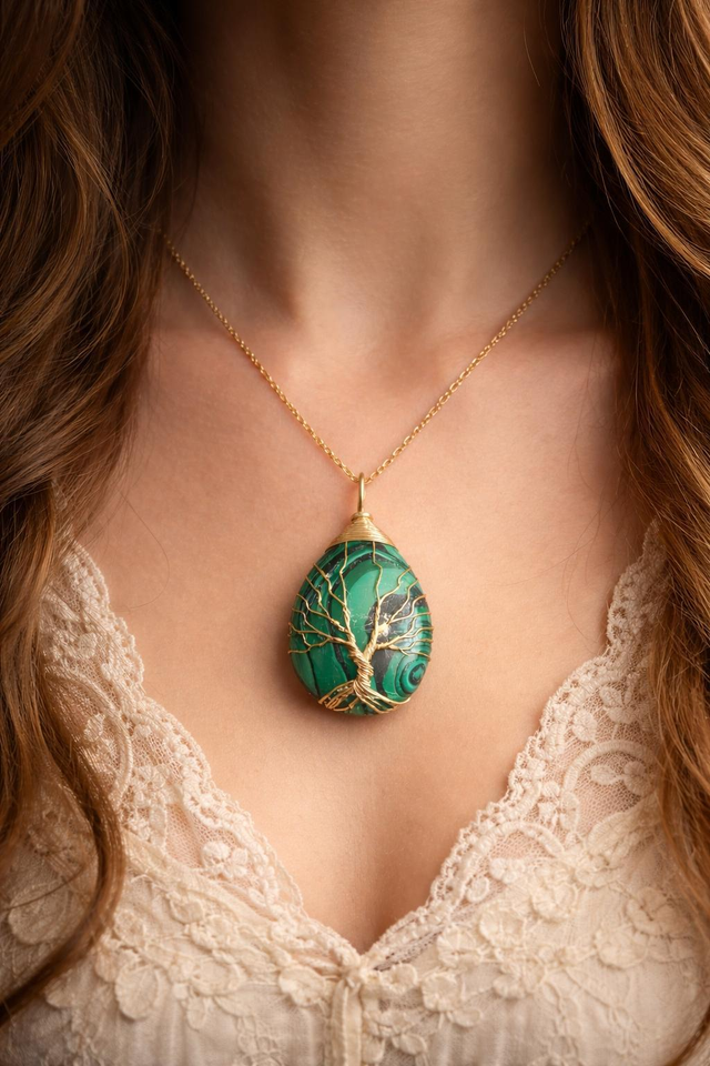 Collier Arbre de Vie – Malachite synthétique reconstituée