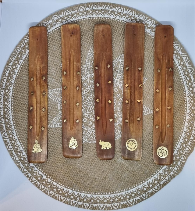 Élégant et artisanal, ce porte-encens en bois de manguier massif avec motif laiton sublime votre décoration et diffuse vos parfums préférés. Design minimaliste et raffiné Motif laiton original Entretien Chiffon doux et sec. Évitez l'eau et les produits chimiques. Bois de manguier durable et laiton Dimensions : 25x4x1 cm Parfait pour créer une ambiance zen et offrir à vos proches. Le motif peut varier en fonction des porte-encens disponibles au moment de votre commande.