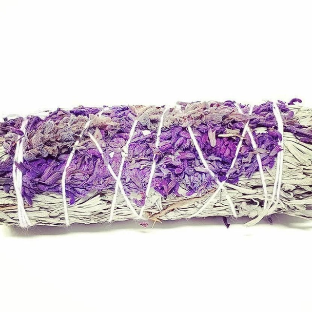 Ce fagot de sauge blanche est associé aux fleurs de Lavande séchées pour une meilleure détente.